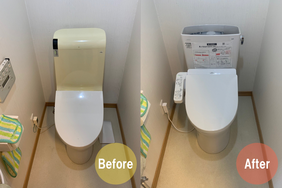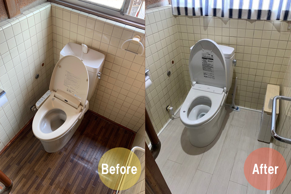 老朽化するとタンク内部の金具に不具合が出て水が止まらない、流れないなど様々な問題が発生します。最近のトイレですと座面が低いので使いやすく、また省スペースでコンパクトです。