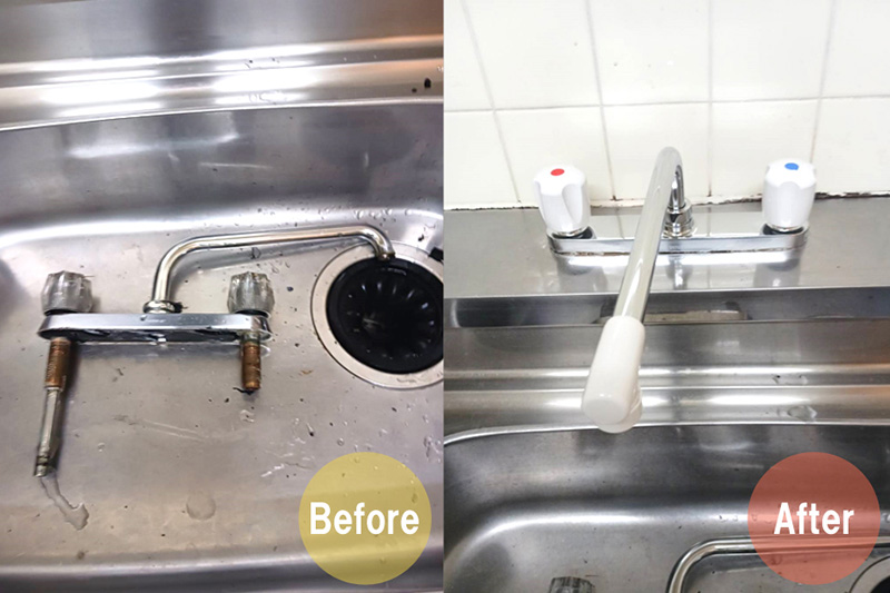 古い蛇口を取り外して新しい蛇口へ交換します。新たな蛇口を取り付けます。お客様のご要望が特に無ければ、現状と似たような蛇口を取り付けさせていただきます。